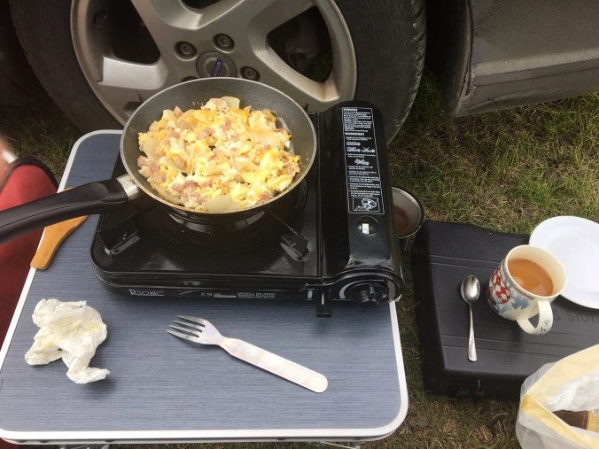 7‘C, bedeckter Himmel. Die Tage beginnen hier irgendwie immer mit einer leichten „Überbewölkung“. Leicht windig. Na ja 🙂. Ich schlafe nicht schlecht in meiner Sänfte, warm isses auch. Und heute hab ich auch keine lange Etappe vor mir, deswegen liege ich immer noch in der Furzmulle 😊