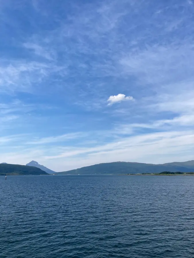 Die Fähre nach Kilboghamn war so 70-80 Minuten unterwegs. Nach Levang dauert es garantiert keine 30 Minuten. Bin schon fast da.