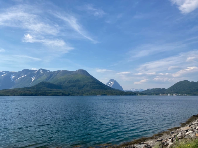 Gegen 7 gestern Abend schon unter 20‘C. Das fühlte sich gut an, endlich ein bisschen Norwegisch. Heute Morgen kurz vor 7 ist es ähnlich, das Thermometer zeigt 22‘C. Aber jetzt knallt mir die Sonne aufs Auto und auf der Pritsche liegt es sich wie im Backofen. Also raus…