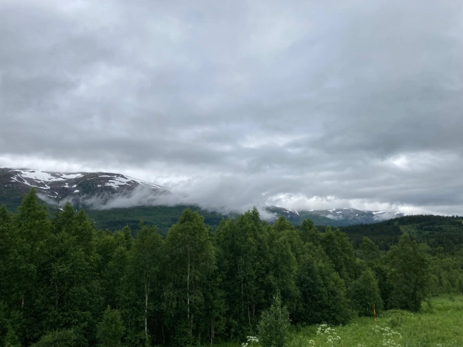 Feinster norwegischer Küstenregen, aus allen Richtungen. Bin am Fährhafen Tjøtta.