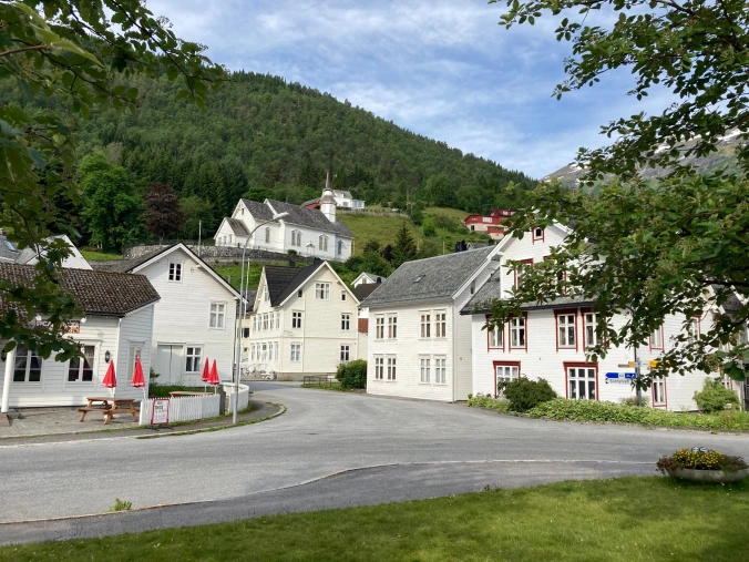 Hellesylt, wie erklär ich das am besten … also, wenn man mit dem Boot nach Geiranger will und verpasst aber die letzte Fjordwindung nach links weil man eingepennt ist weil es am Abend vorher zu viel Küstennebel gab, dann tuckert man gradeaus weiter und kommt nach Hellesylt. Hat das jeder ungefähr verstanden? Ja?