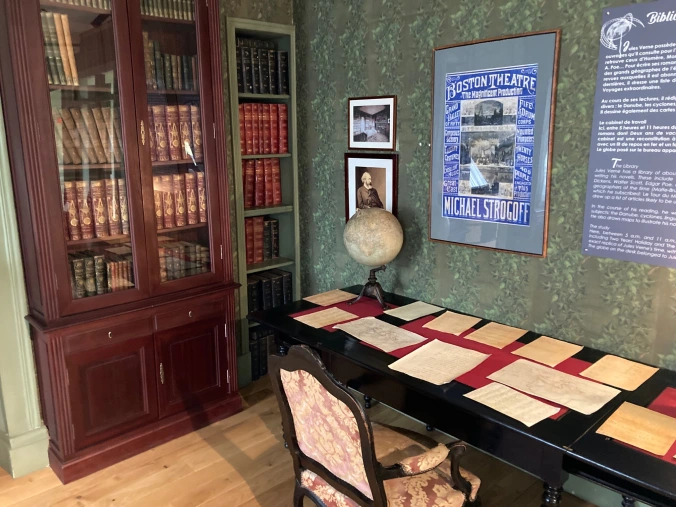 Einer seiner Arbeitsplätze. Die Bücher im Schrank sind übrigens hauptsächlich Geographie- und Wörterbücher.
