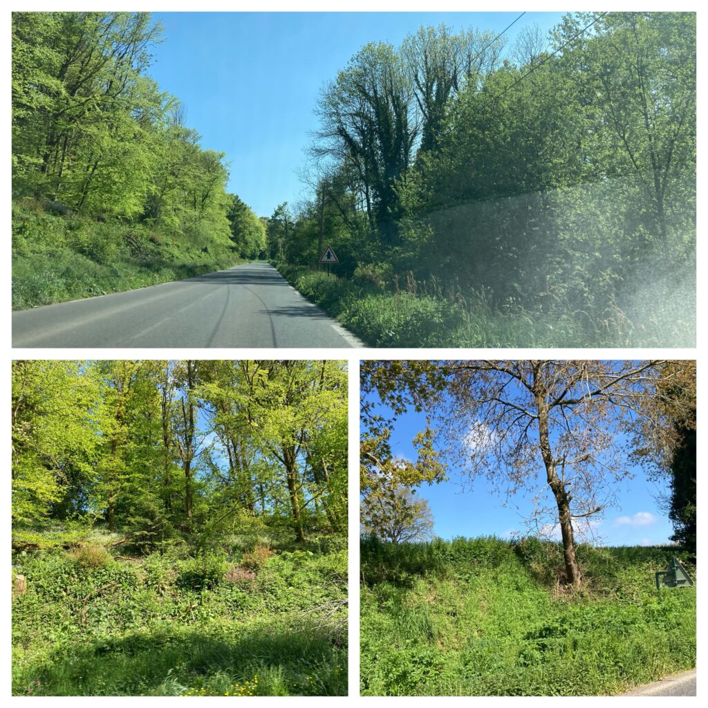 Ein bisschen hinauf, ein bisschen hinunter. Ein paar Kurven. Ein kleiner Wald aus Laubbäumen. Selten Nadelbäume. Bin grad das erste mal seit 2000(?)km unter einer Eisenbahnbrücke durch. Ich dachte sowas gibt’s hier so nah am Meer gar nicht.