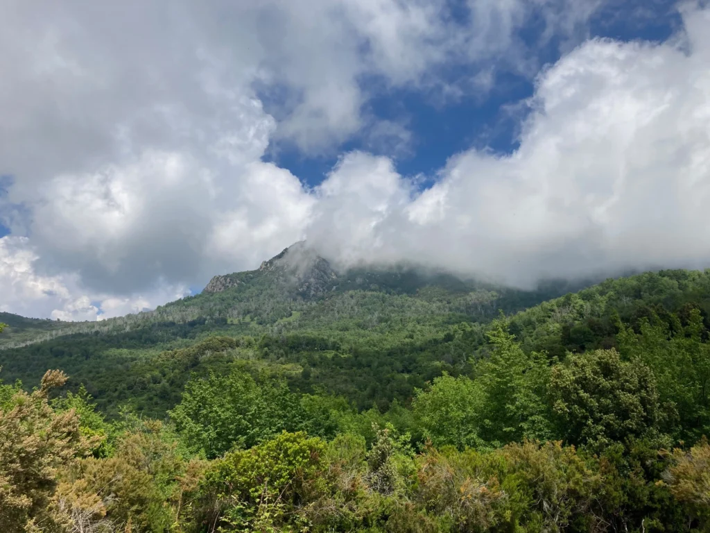 20km vor Corte (42° 27.7163′ N, 09° 12.3554′ O) Was wissen wir da? Corte? Ich hab’s doch jetzt schon oft genug erklärt. Corte? Ja? Regen. Vollkommen richtig. Und? Gewitter. Na also, jetzt haben wir es doch.