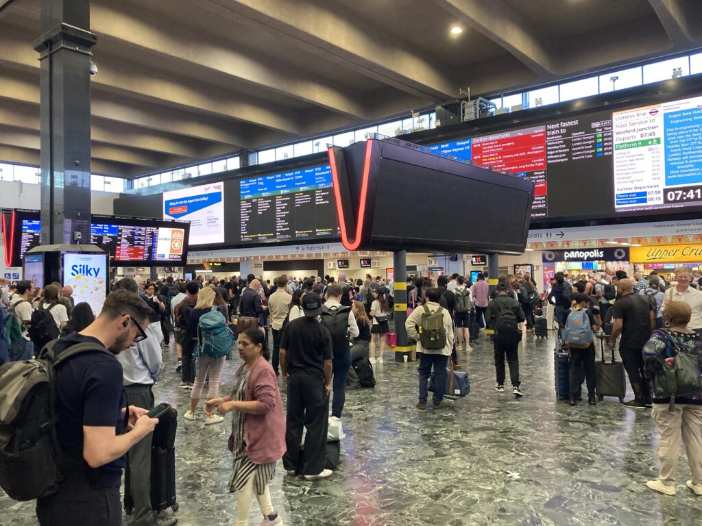 Bahnhof Euston (51.527630, -00.132914). Gleiche Atmosphäre wie gestern.