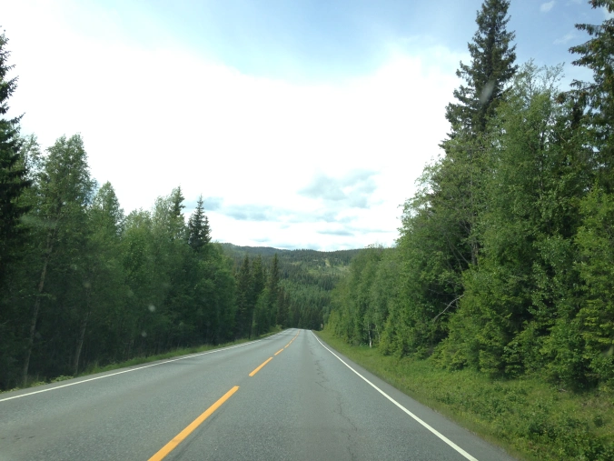 Nadelwälder bis an die Straße, ab und zu abgeholzte Flächen, das ist Holzwirtschaft. Und Vieh. Schafe und Rinder bewegen sich frei oder liegen bräsig auf/an der Straße und verdauen vor sich hin.
