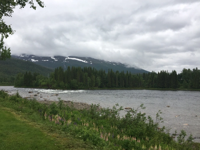 Ich bin die E6 Richtung Süden gefahren. Man kommt recht gut vorwärts, trotz ein paar Baustellen zwischendrin. Die Campingplätze hier in der Gegend sind im Wesentlichen Flächen direkt an der Straße. Der Verkehr der Hauptstraße fährt einem also durch den Kofferraum 😧
