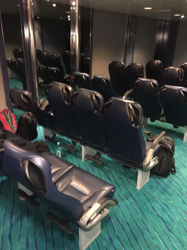 Freie Platzwahl 😎👍 Schlafen auf dem Boden geht, aber man kühlt schnell aus. Schlafen auf diesen komischen Sitzen geht auch, wenn man sich einmal quer 4 Sitze legt.